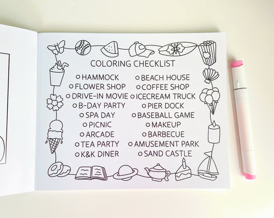 All coloring books are printed on 100lb paper and have 18 pages + a checklist + a coloring swatch page at the end! Each page is hand drawn with love. We recommend using crayons, colored pencils, and markers! Our personal fav are alcohol markers. Be sure to use a Kiki & Kelli protective sheet to prevent bleeding onto next page.